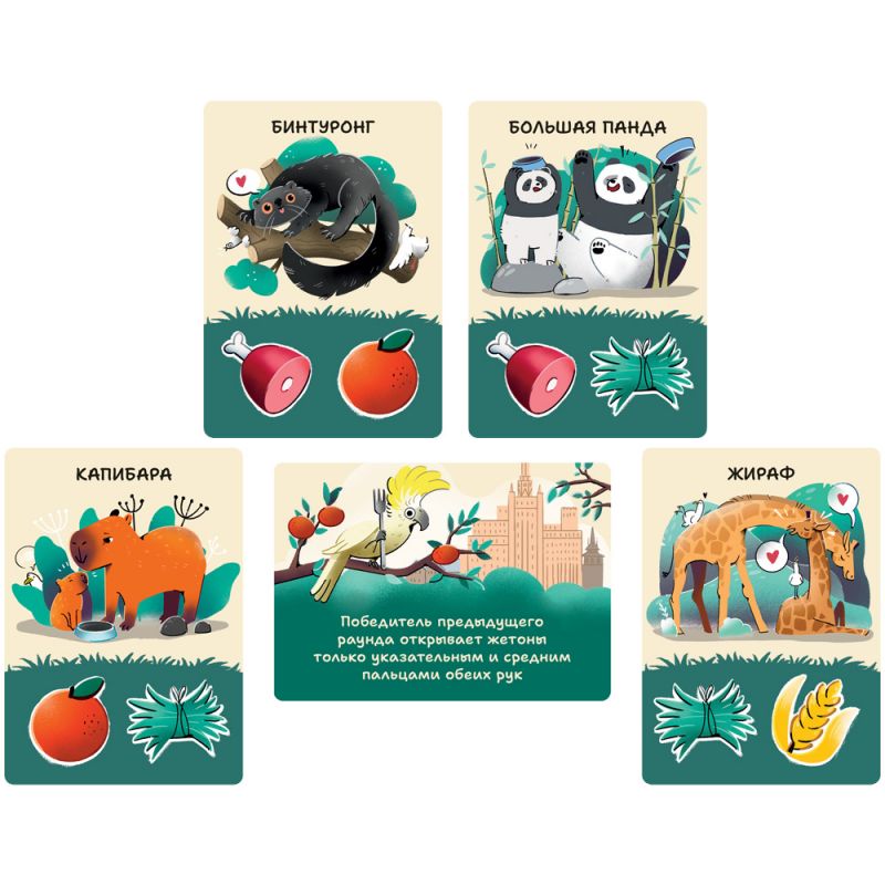 Что едят манул и орангутан? Любит ли дикобраз орехи, а скунс – капусту? В этой увлекательной игре вы узнаете, чем питаются жители главного зоопарка России! Зёрна, мясо, овощи – как бы всё не перепутать!
