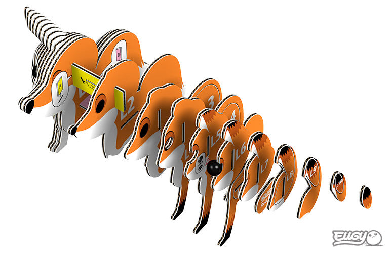 Build your own charming 3D Red Fox model with EUGY's collectible puzzle kit. Discover fascinating facts about these clever creatures—from their adaptability across diverse habitats to their surprising vocalizations. Each pack includes seven numbered cards and non-toxic glue for easy assembly. Safety certified and perfect for curious minds.