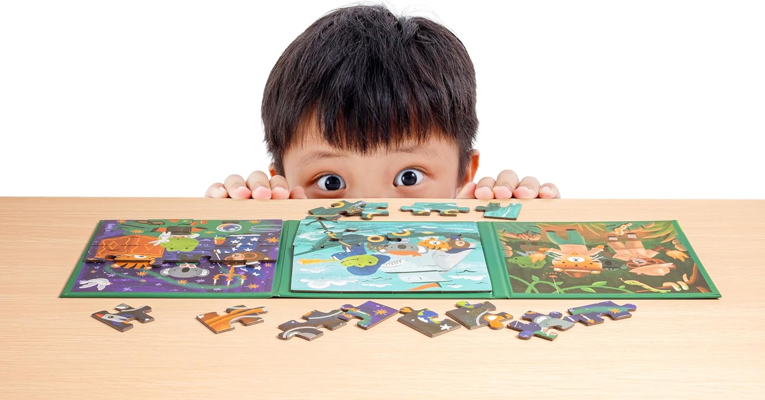 A unique magnetic toy, the best for kids, puzzle! In a foldable package with 4 different puzzles in 1 that closes like a book.