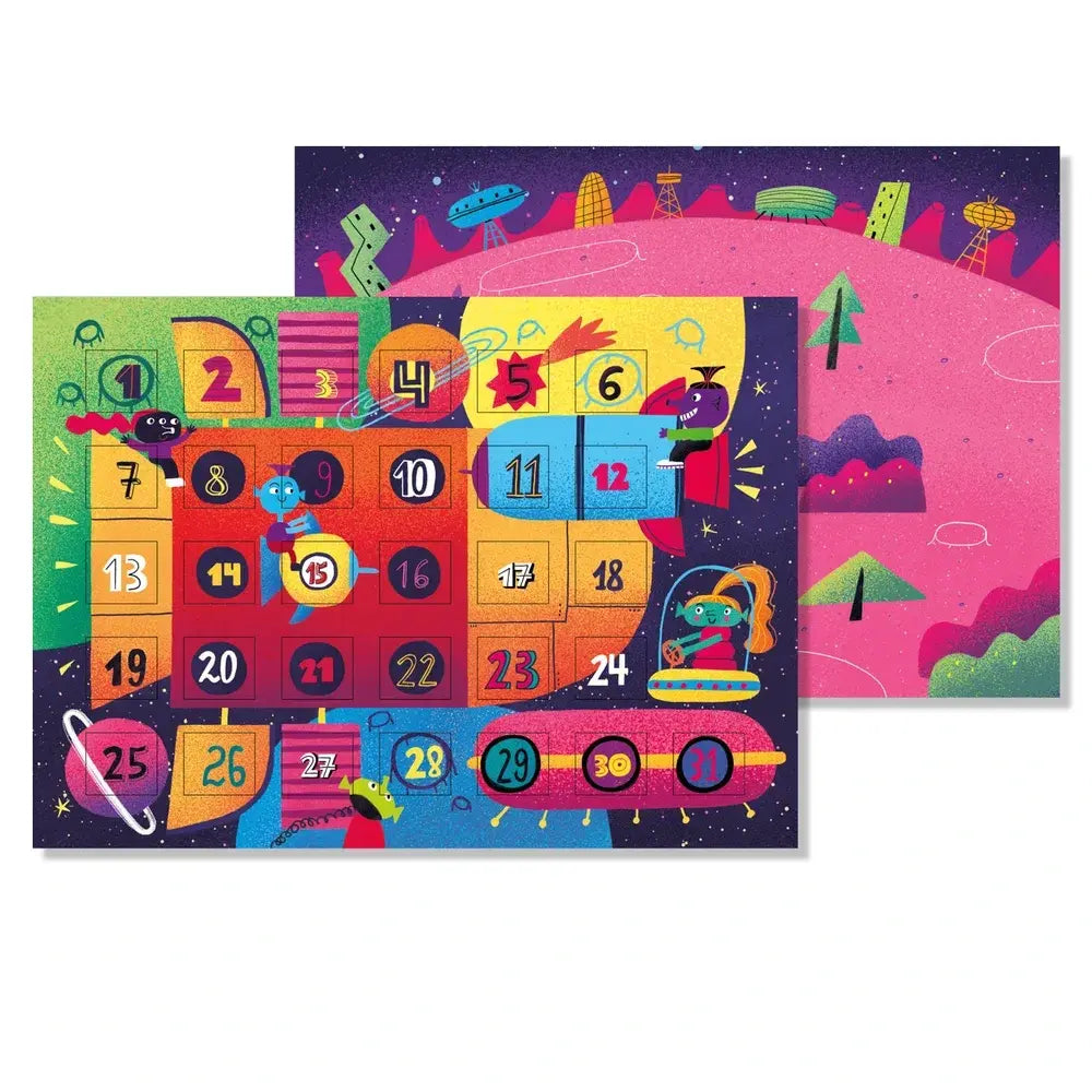 Адвент-календарь "Космический Новый год" — волшебное путешествие в космос на целый месяц! Инопланетяне готовятся к самому грандиозному празднику на розово-сиреневой планете, и ваш малыш поможет им собрать гостей со всех уголков галактики. Каждый день — новое открытие: откройте окошко, найдите наклейку и украсьте ею волшебную открытку. 31 день веселья, творчества и космических приключений! Идеально для детей от 3 лет. Развивает воображение, мелкую моторику и дарит предпраздничное волнение каждый день.