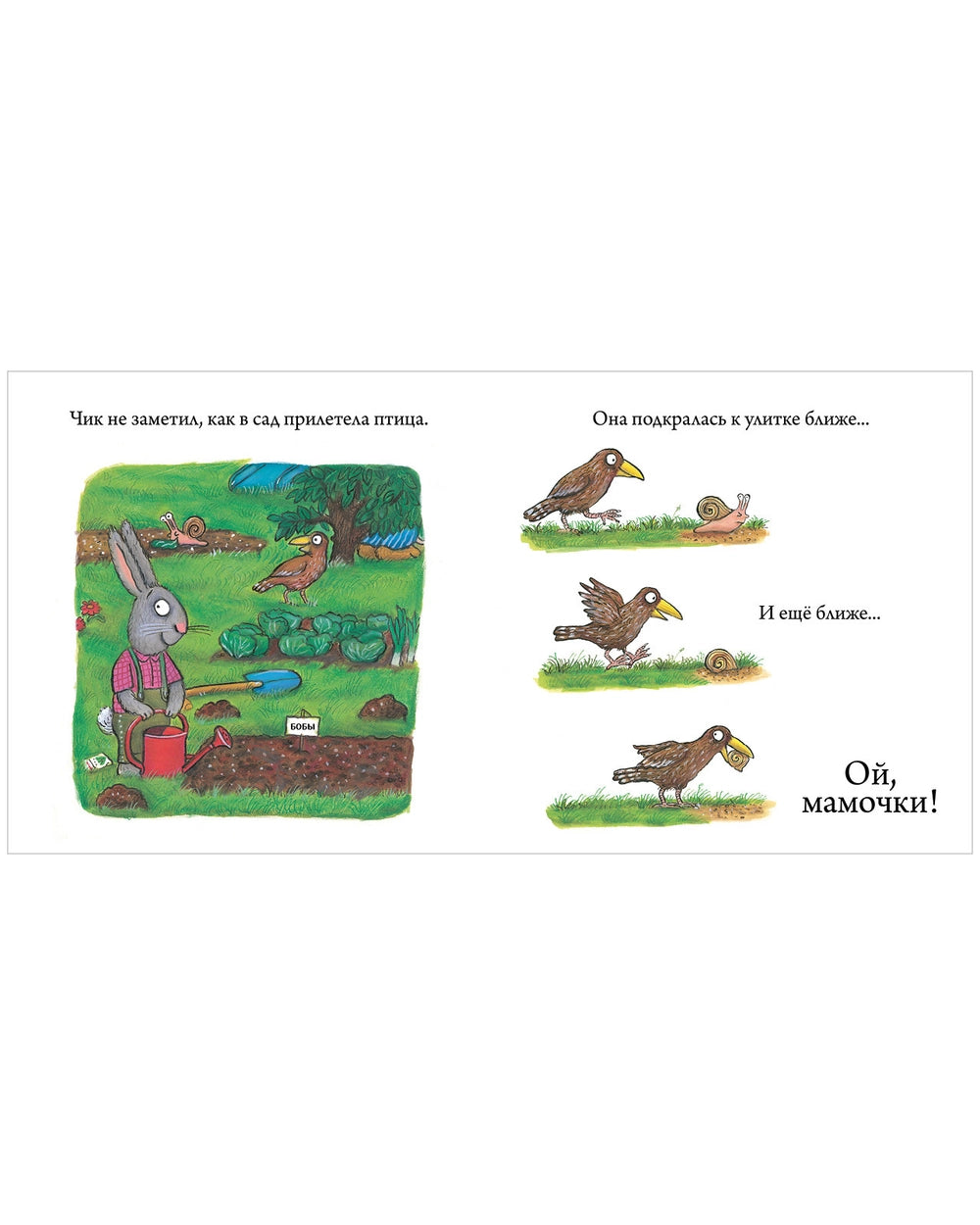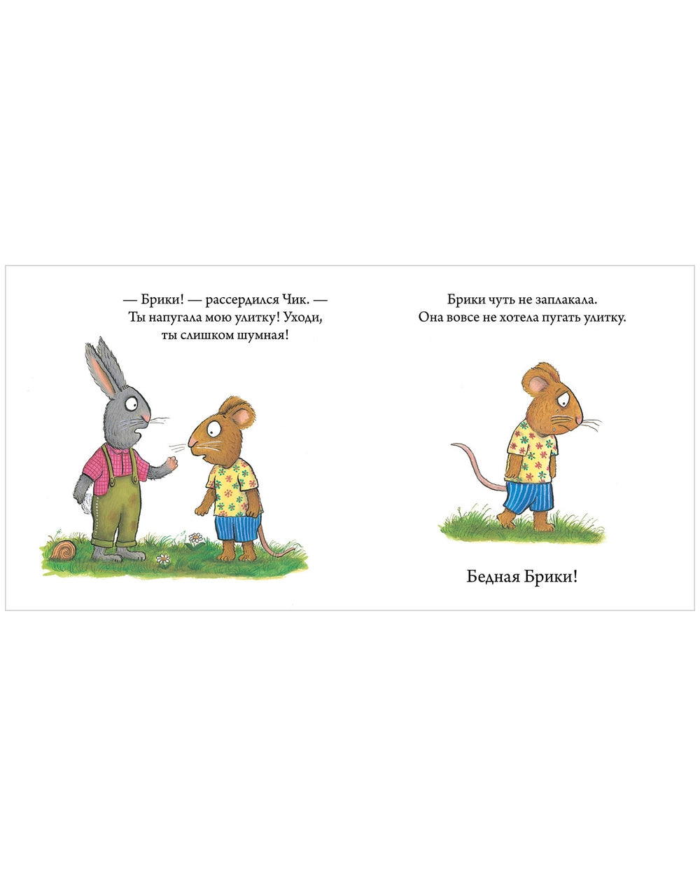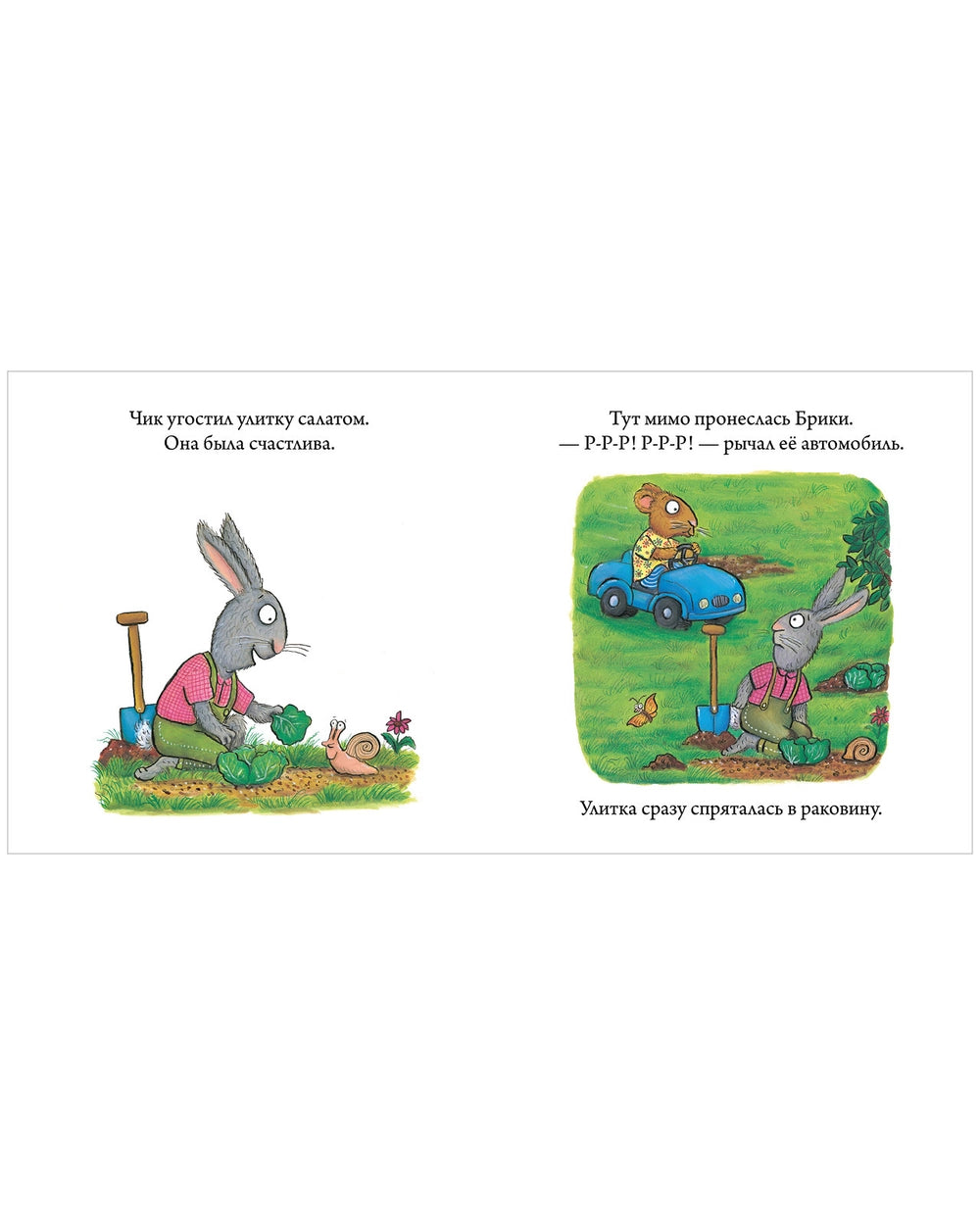 Аксель Шеффлер: Чик и Брики. Пугливая улитка – небольшая история о том, как герои помогают улитке справиться со страхом. Подходит для чтения с дошкольниками.