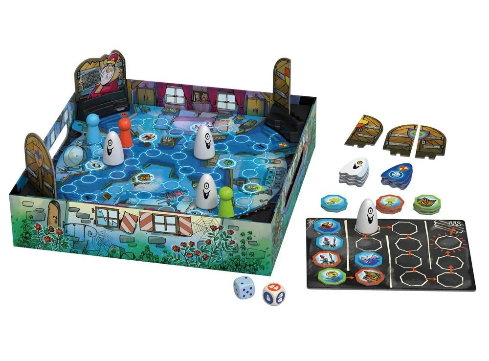 Настольная игра Барабашки в замке – кооперативная игра для детей от 5 лет и всей семьи от издательства Стиль Жизни. Маленькие маги попали в старинный замок, где проказник Барабашка устроил настоящее испытание! Игрокам нужно действовать вместе, чтобы выполнить задания, собрать нужные предметы и выбраться, пока призраки не захлопнули ворота. Помогает и мешает им волшебное колесо призраков, которое приносит неожиданные события.