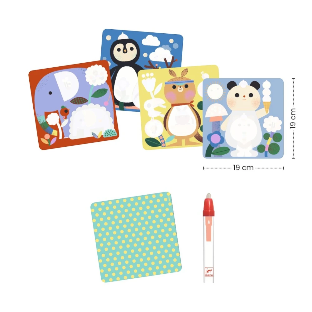 Discover hidden baby animals from around the world with every brushstroke. This water marker painting set lets your toddler explore and reveal adorable creatures on specially designed cards—no mess, pure discovery. Perfect for developing fine motor skills, hand-eye coordination, and curiosity about wildlife. The reusable water marker and sturdy base make it ideal for independent play or guided exploration together. A screen-free way to engage young minds while learning about animals across different continents.