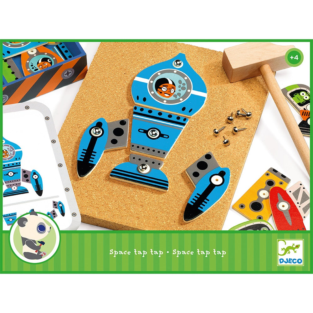 Make spaceships from the individual wooden pieces with this tap tap set! Follow the instruction cards or mix and match the pieces.