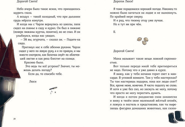 Люси абсолютно уверена: Дед Мороз живет по соседству. Белая борода? Есть. Белые волосы? Есть. Густой и зычный голос, который идеально подходит для восклицания «Хо, хо, хо»? Есть. И что с того, что у него нет красной шубы? Зато есть красная шапка. Даже с помпоном. К тому же соседний дом граничит с лесом, а поляна позади него идеально подходит для выгула оленей. Люси это вполне устраивает, потому что она может отправить свой список желаний прямо ему в почтовый ящик. Есть много вещей, которые она хочет. Например, чтобы папа не был таким грустным. И подружиться с девочками из класса. Вот почему она не сдается, когда в ответном письме говорится, что она ошиблась адресом и ее сосед вовсе не Дед Мороз.