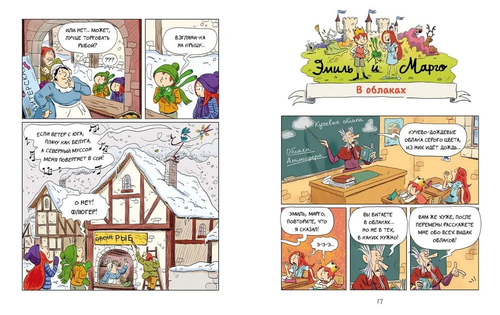 Эмиль и Марго. Витаем в облаках – новый том комикс-серии про принца Эмиля и принцессу Марго и их друзей-монстриков. В замке снова всё идёт наперекосяк: урок легко превращается в приключение по облачным замкам, наказание – в отдых на солнечном пляже, а из портфеля может выглянуть любопытный Зайка-Знайка. Короткие истории можно читать в любом порядке.