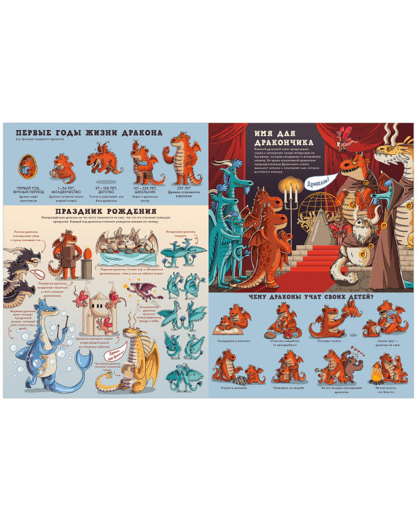 Эта невероятная книга расскажет вам о драконах, их жизни и повадках. Вы узнаете, как драконы отмечают день рождения, с кем они играют в бинго и чему учатся в школе.