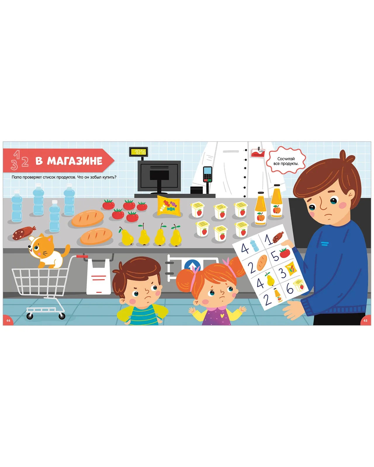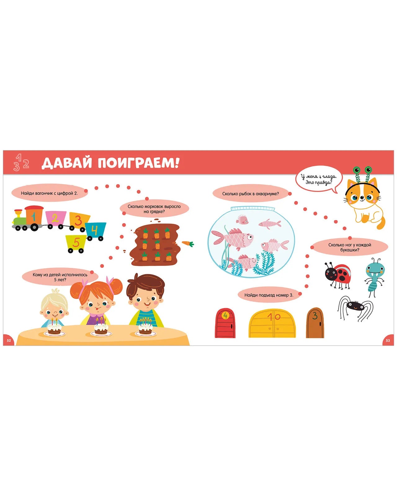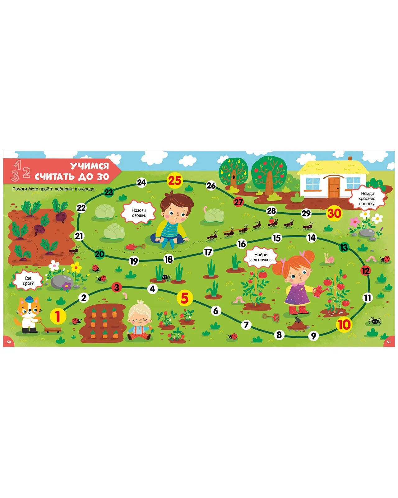 Интерактивная книга-игра для малышей от 2 лет, разработанная для развития речи и познавательных навыков. Содержит яркие иллюстрации и увлекательные задания: "найди и покажи", лабиринты, загадки и головоломки. Охватывает основные темы обучения — цвета, буквы, счёт до 30, формы, размеры, дни недели и части тела. Идеальна для занятий с персонажами Серёжей, Соней, Сашей и котёнком Мотей, которые сопровождают малыша на протяжении всей книги.