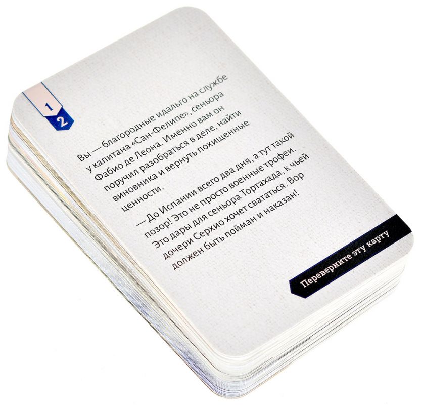 Атлантический океан, 1715 год. Серхио Кортес, потомок прославленного завоевателя, отправляет в Испанию корабль золота. Но за два дня до берега сокровища пропадают из каюты капитана. На месте преступления нет следов, и корабль скоро войдёт в порт. У вас всего 24 действия, чтобы обличить вора. Если только вы знаете, кому можно верить…