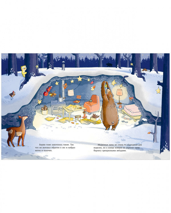 Что такое Новый год? Нарядная ёлка, подарки, веселье и, конечно, гости! Мама, папа и дети из дружной семьи Арнольдов отмечают его дома, а мишка – в зимнем лесу. Кто же разделит с ним праздник?Уютная новогодняя история о настоящей дружбе и волшебстве.