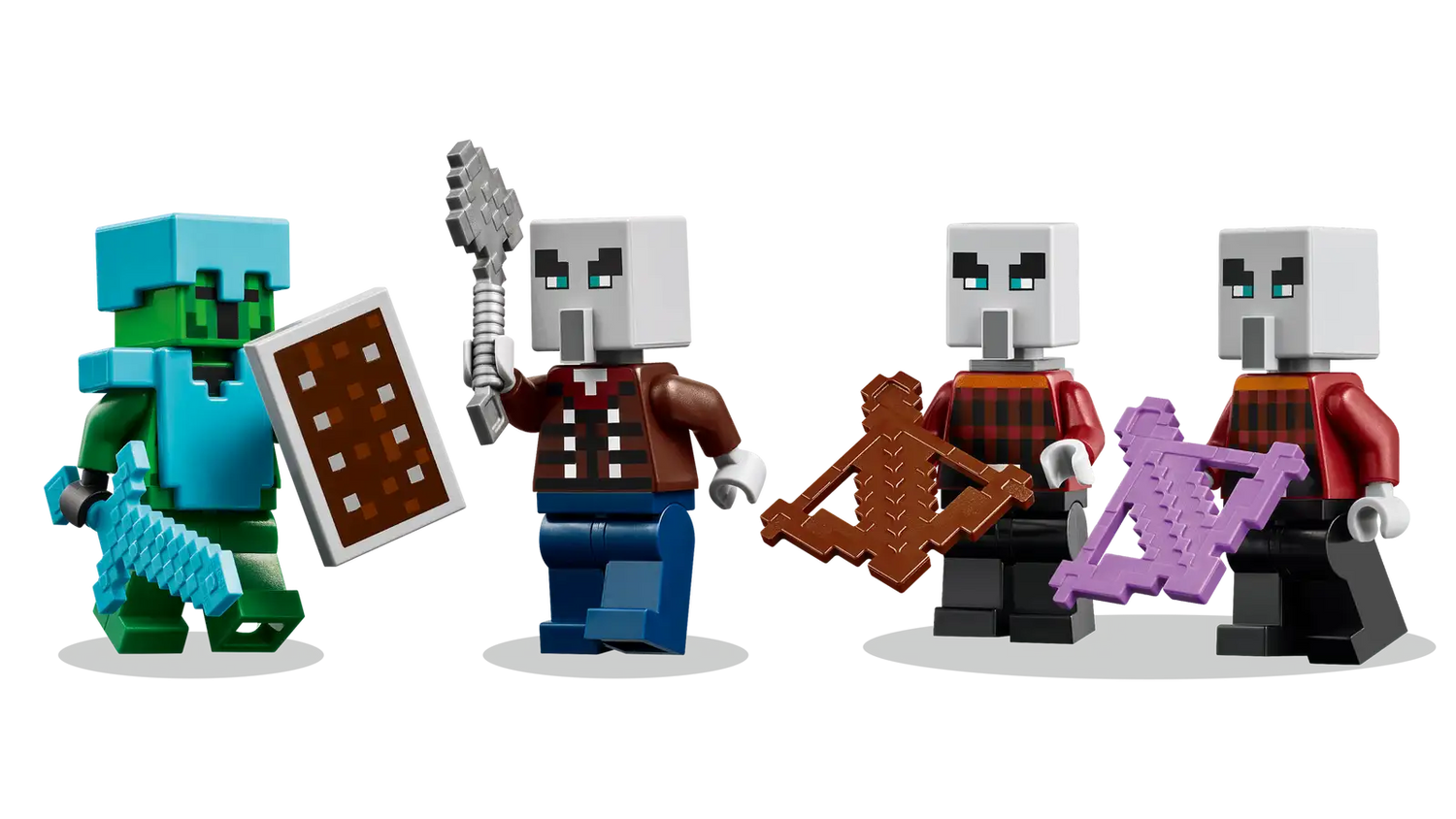 Defend your desert outpost with the LEGO¨ Minecraft The Illager Desert Patrol (21267). This 105-piece set lets players aged 7 and up role-play as a Cactus Knight, equipped with diamond armor, sword, and shield, to protect treasure from illagers. Features include a flick-fire missile launcher, a treasure barrel, and a variety of weapons. The set also offers digital interactivity through the LEGO Builder app, allowing users to zoom and rotate models in 3D.