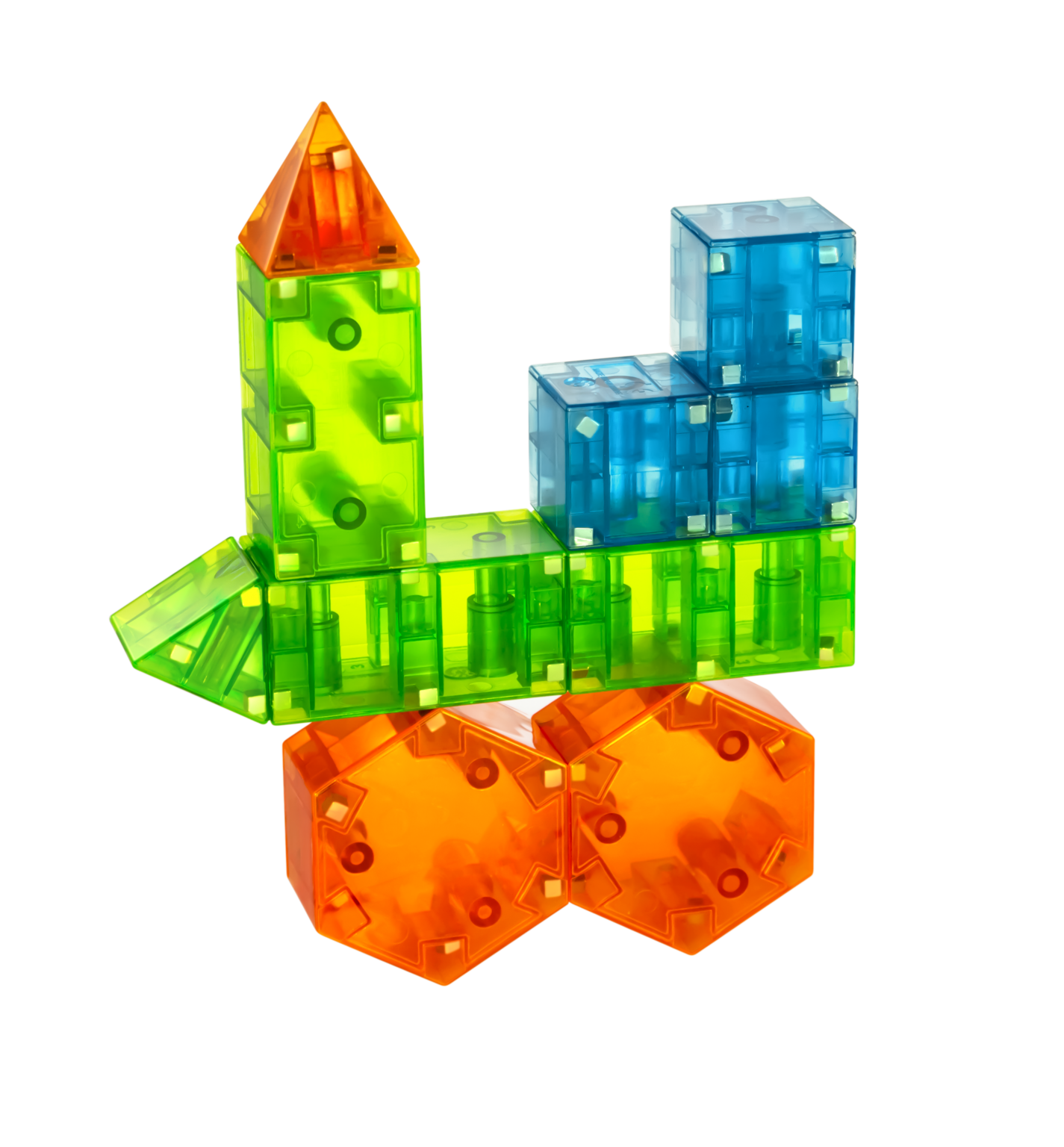 Take your builds to another dimension. The Magna-Qubix® 29-piece set features 3D cubes, prisms, and pyramids for endless hours of screen-free experimentation, learning, and fun. With “rare earth” magnets, these fun geometric shapes easily connect with your other magnetic tiles and pieces.