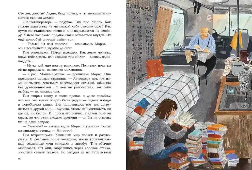 Рыжий Тим предпочитает одиночество в своем уютном автобусе на краю пустоши, но судьба готовит ему сюрприз! Когда в его жизнь врываются загадочные книги и энергичная Марго, спокойная рутина превращается в захватывающее приключение. Вместе они раскроют тайны старого графа, найдут сокровища и откроют для себя, что самое ценное — это дружба и новые мечты. Идеальная история для тех, кто верит, что даже самый закрытый сердце может распахнуться для волшебства. Присоединяйтесь к Тиму и Марго в их детективном путешествии!