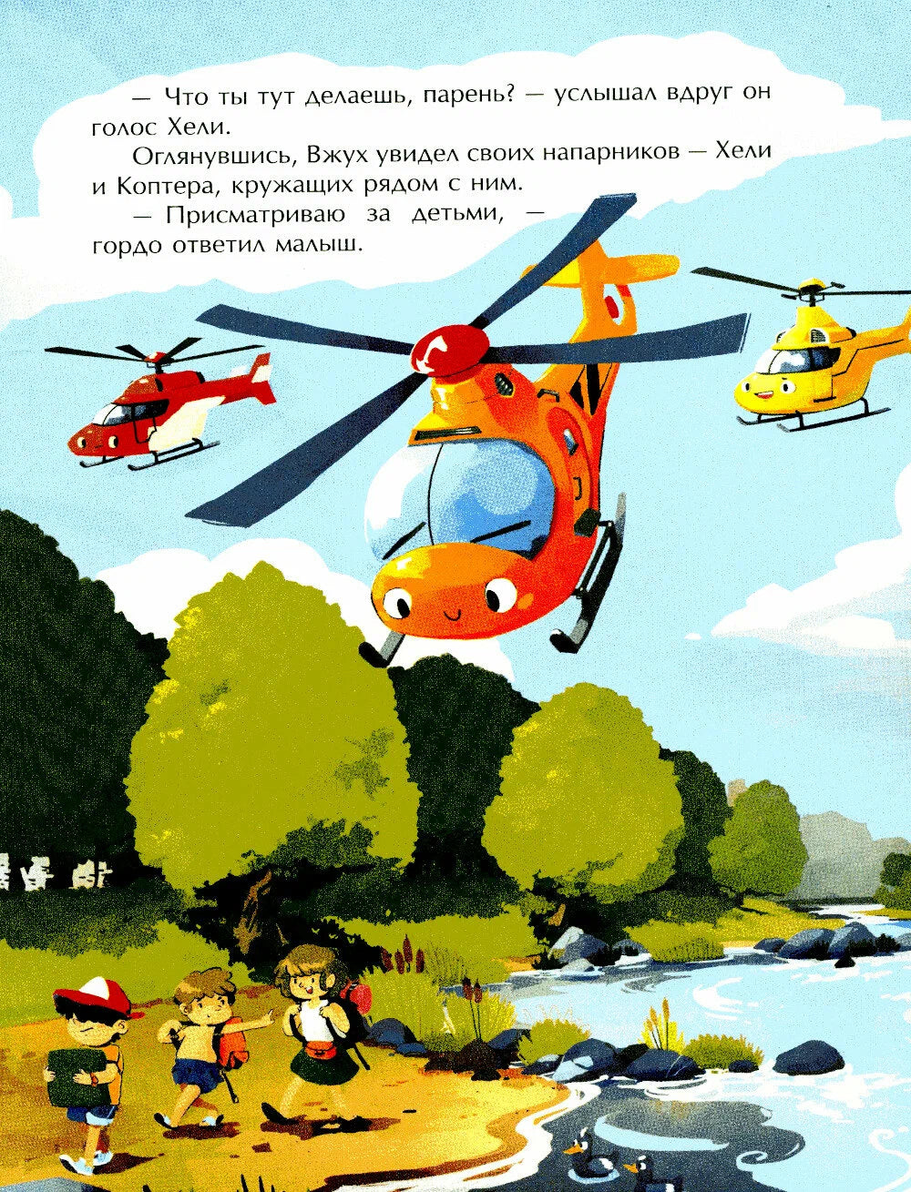 Маленький спасательный вертолёт Вжух с нетерпением ждал своей первой миссии, но в из-за несчастного случая теперь никак не может перебороть свой страх к полётам. Тем временем группа туристов и их маленькая собачка попадают в беду. Сможет ли вертолётик преодолеть свой страх и стать настоящим спасателем?