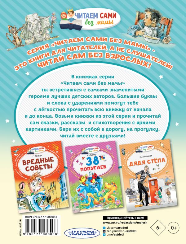 Серия «Читаем сами без мамы» предназначена для самостоятельного чтения детьми. В этой книге собраны весёлые рассказы Михаила Зощенко о Лёле и Минька, маленьком Павлике, робком Васе и других персонажах. Автор использует остроумный и лёгкий язык, который делает чтение увлекательным и непринуждённым. Компактный формат, крупный шрифт и ударения в словах облегчают восприятие текста. Идеальный выбор для детей, развивающих навыки беглого чтения. Подходит для дошкольного возраста.