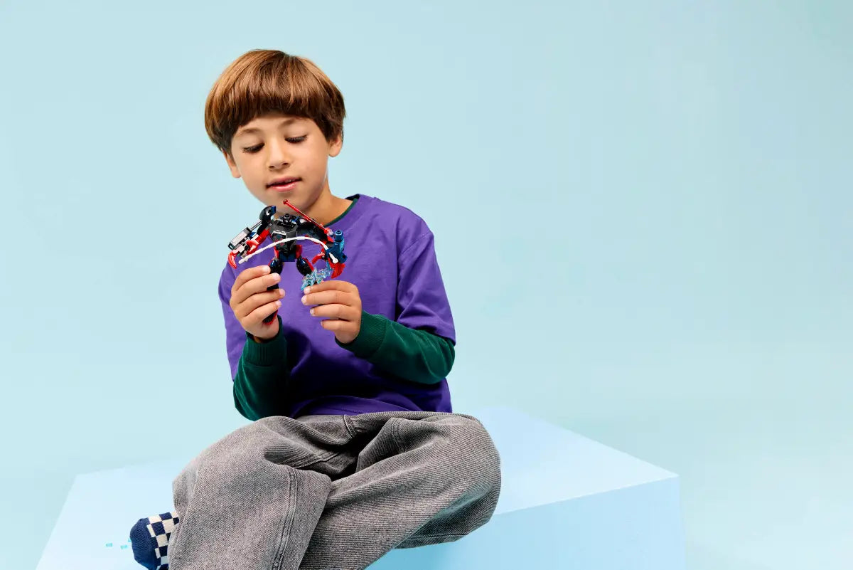 Miles Morales Mech vs. Spider-Man 2099 is a LEGO Marvel building set for ages 6+. Build a fully jointed mech with detachable weapons, then recreate epic battles with Miles Morales and Spider-Man 2099 minifigures. Perfect for fans of Marvel Studios' Spider-Man: Across the Spider-Verse who love action-packed play.