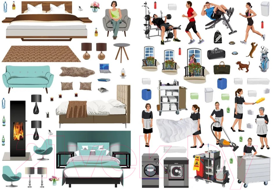 Ты любишь путешествовать и тебе давно хотелось оказаться в великолепном отеле, а может даже обустроить его по собственному желанию? Тогда открой книгу "ОТЕЛЬ" – и вперёд к творчеству! Ищи, приклеивай и фантазируй! Создай шикарный отель с бассейном и садом своими руками!Из 13 пустых комнат отеля можно создать стильные гостиные и спальни с мебелью и другими предметами интерьера. Огромный выбор мебели, картин, элементов декора и прочих мелочей, поможет создать свой отель мечты.В чем особенности книги: - Более 400 реалистичных наклеек разной величины.- 13 ярких тематических фонов для творчества.- Книга способствует развитию мышления, внимания, логики, воображения и мелкой моторики.Что найдем внутри: Много возможностей для творчества и фантазии. Более 400 наклеек с изображениями, связанными с жизнью отелей, и красочные страницы с фонами для заполнения. Важно знать родителям: - Книга с наклейками рекомендована для детей от 3 лет