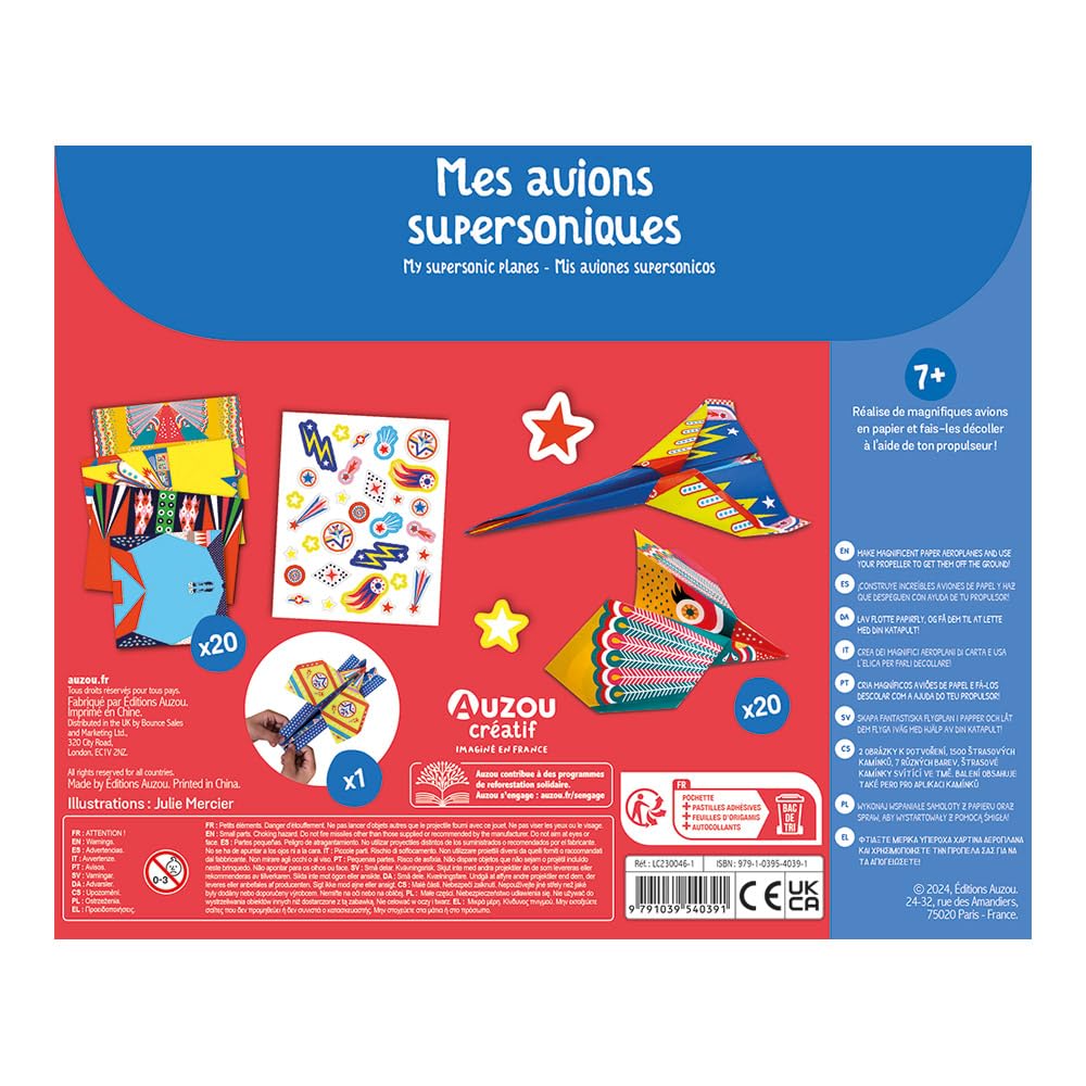 Create 20 ultra-fast paper airplanes with this fun and interactive kit! It includes origami sheets, an ultrasonic thruster, stickers, and a detailed booklet for easy and precise folding. It's a fun way to experiment with aerodynamics!