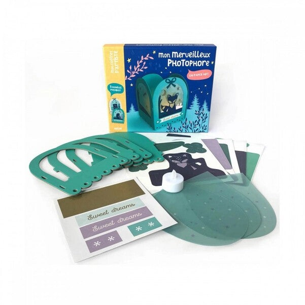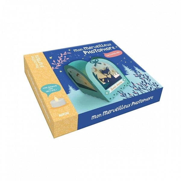 Craft your own decorative candle holder with this Auzou paper kit. Follow simple step-by-step instructions to build and assemble, then insert the included LED light to create a beautifully illuminated centerpiece. A rewarding project that combines creativity with functional home décor.