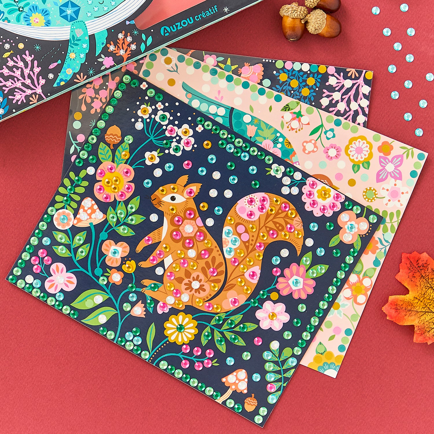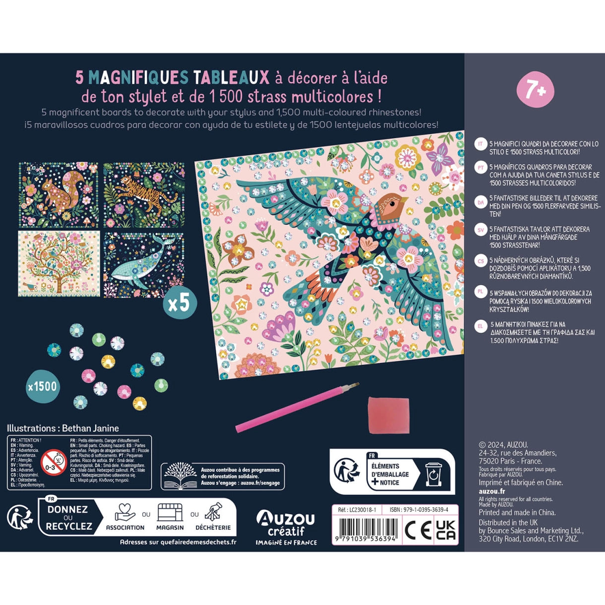 A creative set with five decorative pictures to complete with more thand a thousand colourful and sparkling sequins.