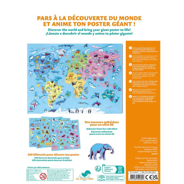 Get to know and discover the world, using the 140 3D stickers to bring the giant world map poster to life.