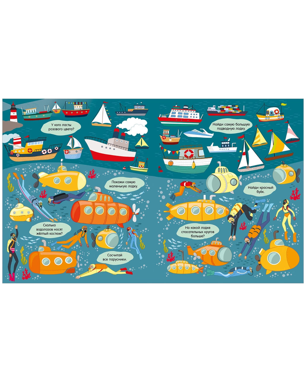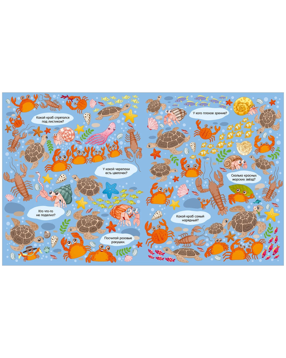 Найди и покажи. Океаны и моря – книга с заданиями на поиск в подводном мире: морские животные, кораллы и обитатели глубин. Развивает внимание и знакомит с миром океана.