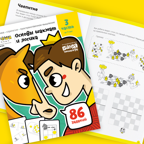 В тетради собраны 86 заданий, которые помогут подготовиться к шахматам: никаких схем и дебютов — только веселье!
