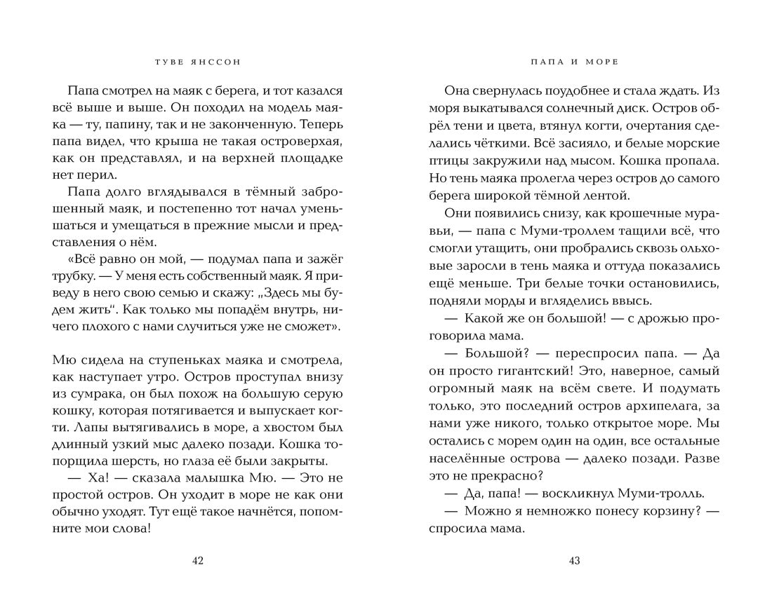 Муми-троллям уже доводилось переезжать, а Муми-папа – тот вообще великий путешественник. Вот и сейчас, к концу лета, Муми-папа решил, что размеренная жизнь в Долине – не для его мятежной души. Его призвание – жить на острове с маяком, средь бушующего моря, и указывать путь кораблям. Cемейство отправляется в путь. Маяк на первый взгляд кажется довольно скучным и неуютным местом. Однако это только на первый взгляд. Ведь Муми-мама сумеет сделать уютным даже голый утес, а тайн, опасностей и бушующего моря семейству хватит надолго!