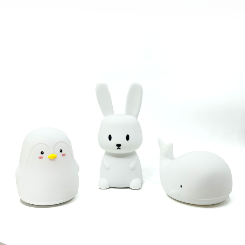 Soft silicone penguin night light with rechargeable 1200mAh battery. Provides 10–12 hours of gentle, continuous light per charge. Safe for children and perfect for creating a calming bedtime atmosphere.