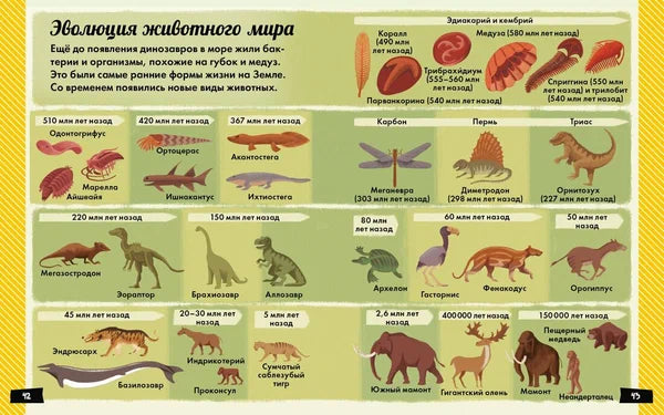 В этой книге ты найдёшь ответы на самые любопытные вопросы о поразительных животных, некогда населявших нашу планету. Ты узнаешь, кто жил на Земле до появления динозавров, как выглядели древние насекомые, насколько большими были летающие ящеры, от кого произошли птицы, и многое другое.