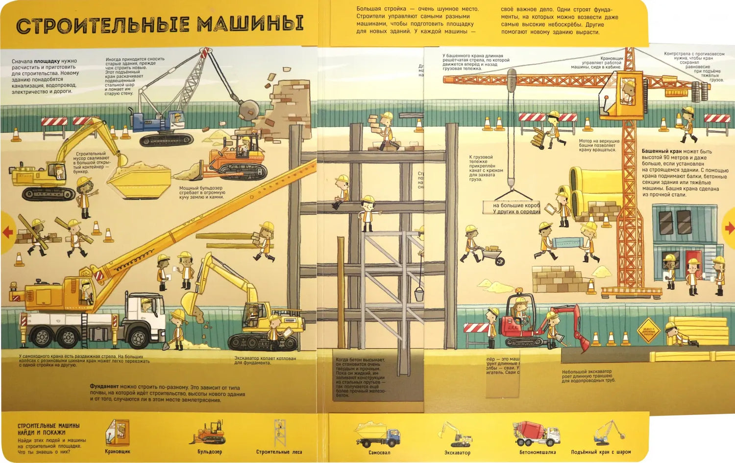 В "Мега-машинах" читатель побывает на огромном круизном лайнере, на строительной площадке, в аэропорту и даже на Международной космической станции, рассмотрит разные виды поездов и подъёмных кранов, узнает множество любопытных фактов о самых разных машинах от экскаватора до космического корабля.