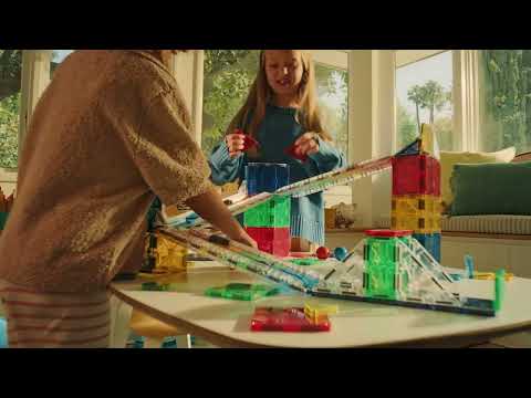 Rail Racers Deluxe 90-Piece Set lets kids build custom racetracks with clear magnetic rails and innovative pieces. Snap together effortlessly to create ramps, bridges, and towers, then roll balls through your designs. Perfect for exploring speed and momentum while developing problem-solving skills. Includes gates and fences for sturdy builds, with everything storing neatly when playtime ends.