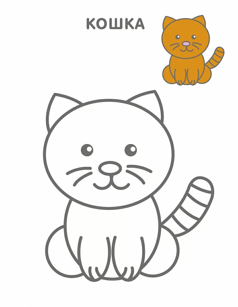Самые первые раскраски. Для девочек 2+ – раскраска для малышей, чтобы уверенно освоиться с карандашами и фломастерами: простые крупные рисунки удобно раскрашивать, толстые контуры помогают не «терять» линию, а примеры рядом подсказывают, какие цвета можно выбрать. Отличный вариант для коротких занятий на каждый день: ребёнок тренирует руку, учится аккуратности и постепенно привыкает доводить картинку до конца; плотные страницы выдерживают разные материалы.