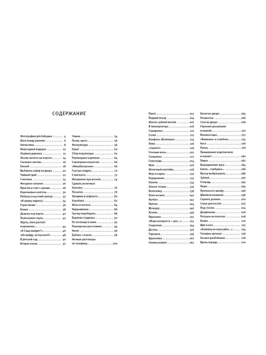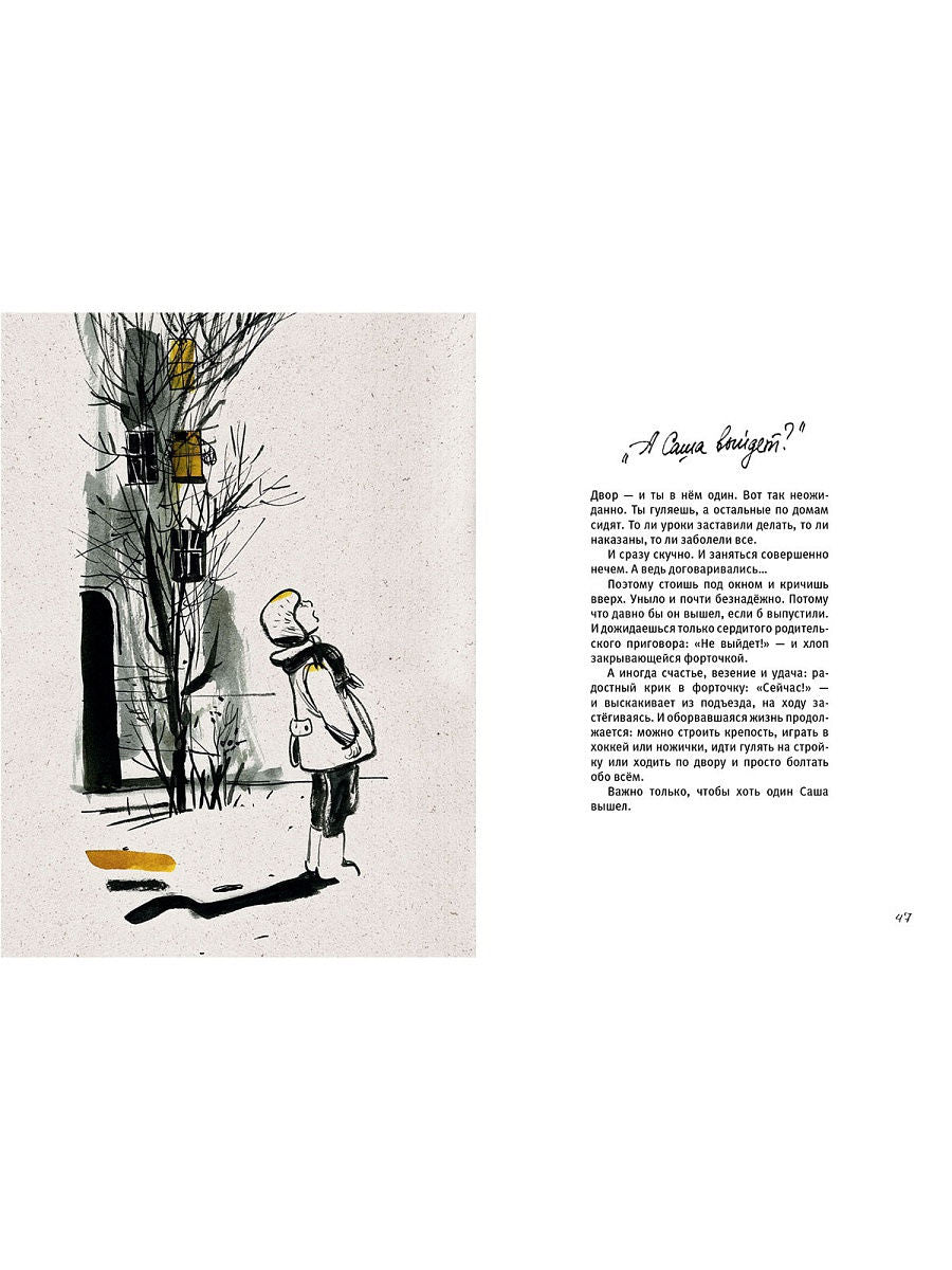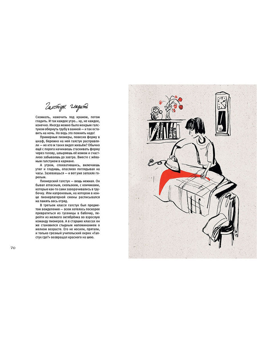 Да! У меня тоже такое было! - воскликнете вы, когда откроете эту книгу. Кусачий свитер, диафильмы, стенгазета, сачок, сбор макулатуры, переводные картинки, фанерный ящик посылки и сургучная печать. Герои этой книги выбивают ковер во дворе, варят сгущенку, гладят пионерский галстук, не наступают на трещины в асфальте, измеряют глубину луж весной. И посылают друг другу позывные под окнами: "А Саша выйдет?". Несколько лет подряд Евгения Двоскина мысленно переносилась в советское детство и делала как будто зарисовки с натуры. Сюжетов, таких узнаваемых и трогательных, набралось больше сотни. Со временем каждая зарисовка дополнилась великолепным текстом - метким, образным, лаконичным и ироничным. И вот теперь картинки и истории собрались под одной обложкой, чтобы встретиться с читателем. До чего уютно и весело будет всей семьей окунуться в воспоминания о своем, похожем. А тем, кто помладше, книжка покажет и расскажет, как жили их родители, дедушки и бабушки.