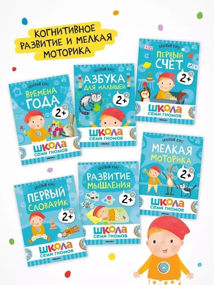 Школа Семи Гномов. Годовой базовый курс. Комплект 2+ – годовой комплект из двенадцати книжек и материалов для занятий: задания на речь, логику, счёт, внимание и творчество, чтобы заниматься понемногу в течение года.