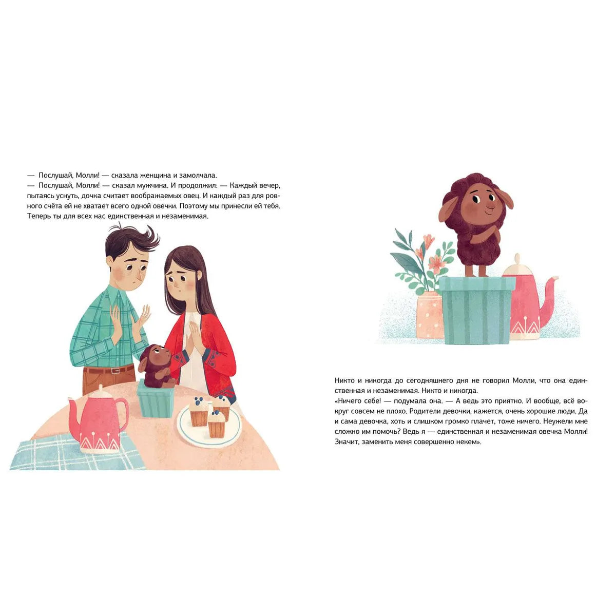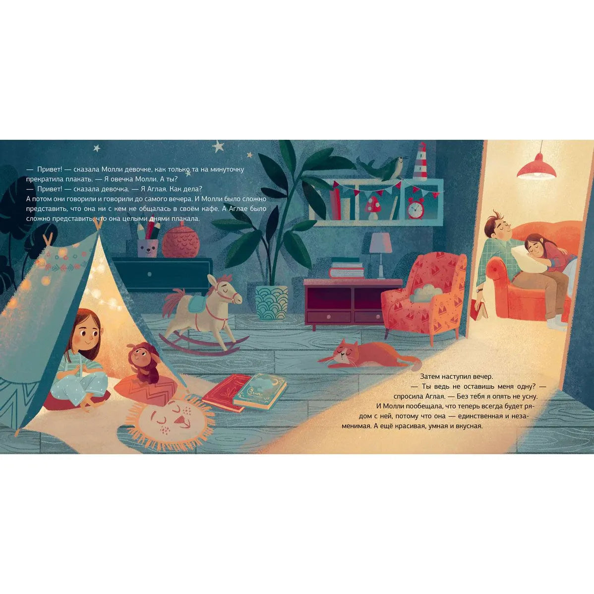 Девочке Аглае грустно и одиноко, поэтому она никак не может уснуть. Овечка Молли не хочет ни с кем общаться, потому что считает себя лучше других. Но однажды они встречаются. Аглая и Молли вместе отправятся гулять по Сонным полям, будут радоваться и скучать, но самое главное - поймут, что настоящая дружба творит чудеса и всех делает лучше: и людей, и овечек, и даже пирожные…