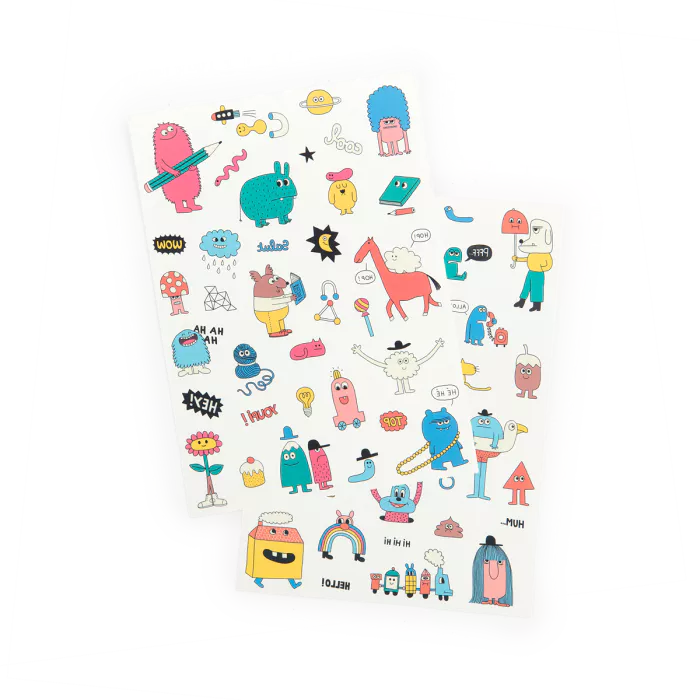 Discover the enchanting world of the Schmouks with these delightful temporary tattoos by Moulin Roty, featuring artwork by Delphine Durand. Two sheets of pre-cut designs apply effortlessly with just water—no mess, no fuss. Perfect for imaginative play and gift-giving, these tattoos are dermatologically tested for safe, worry-free fun on young skin.