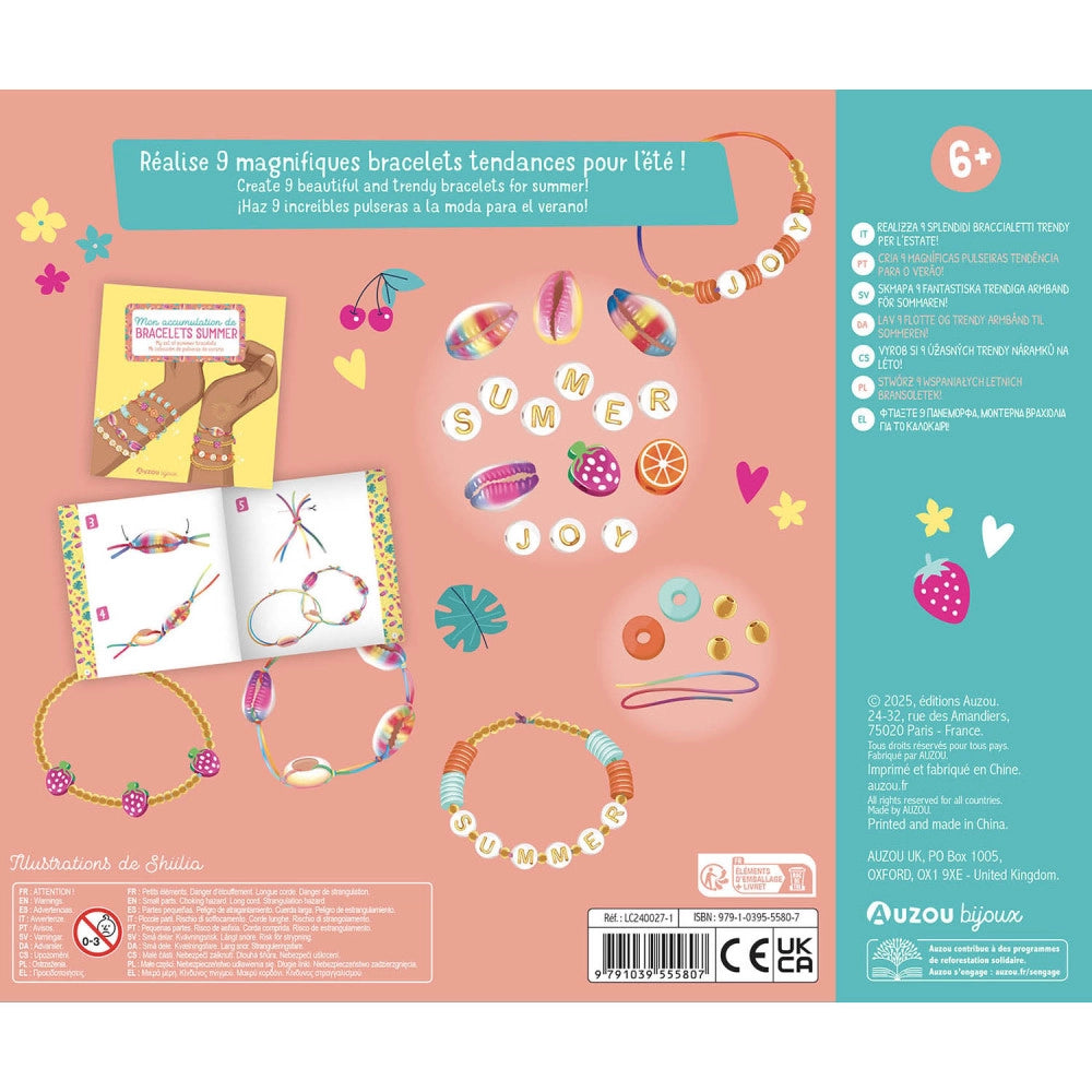 Create beautiful summer bracelets with this engaging craft kit from Auzou. Design and assemble nine unique pieces using the included materials and follow along with clear, illustrated instructions. Perfect for crafting enthusiasts who love personalized accessories, this kit lets you mix, match, and share your handmade creations with friends. Discover the joy of wearing jewelry you've crafted yourself while building creative confidence and fine motor skills.