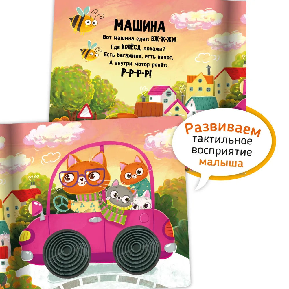 Забавные стихи о транспорте от Юлии Весовой оживают в этой инновационной тактильной книге! Малыш не только узнает о различных видах транспорта, но и потрогает их — почувствует текстуру колёс, мягкость воздушного шара и гладкость космического аппарата. Каждая страница приглашает к исследованию с силиконовыми и меховыми вставками, развивая воображение, речь, память и моторику. Идеальный подарок для любознательного малыша, который превращает чтение в увлекательную игру открытий!