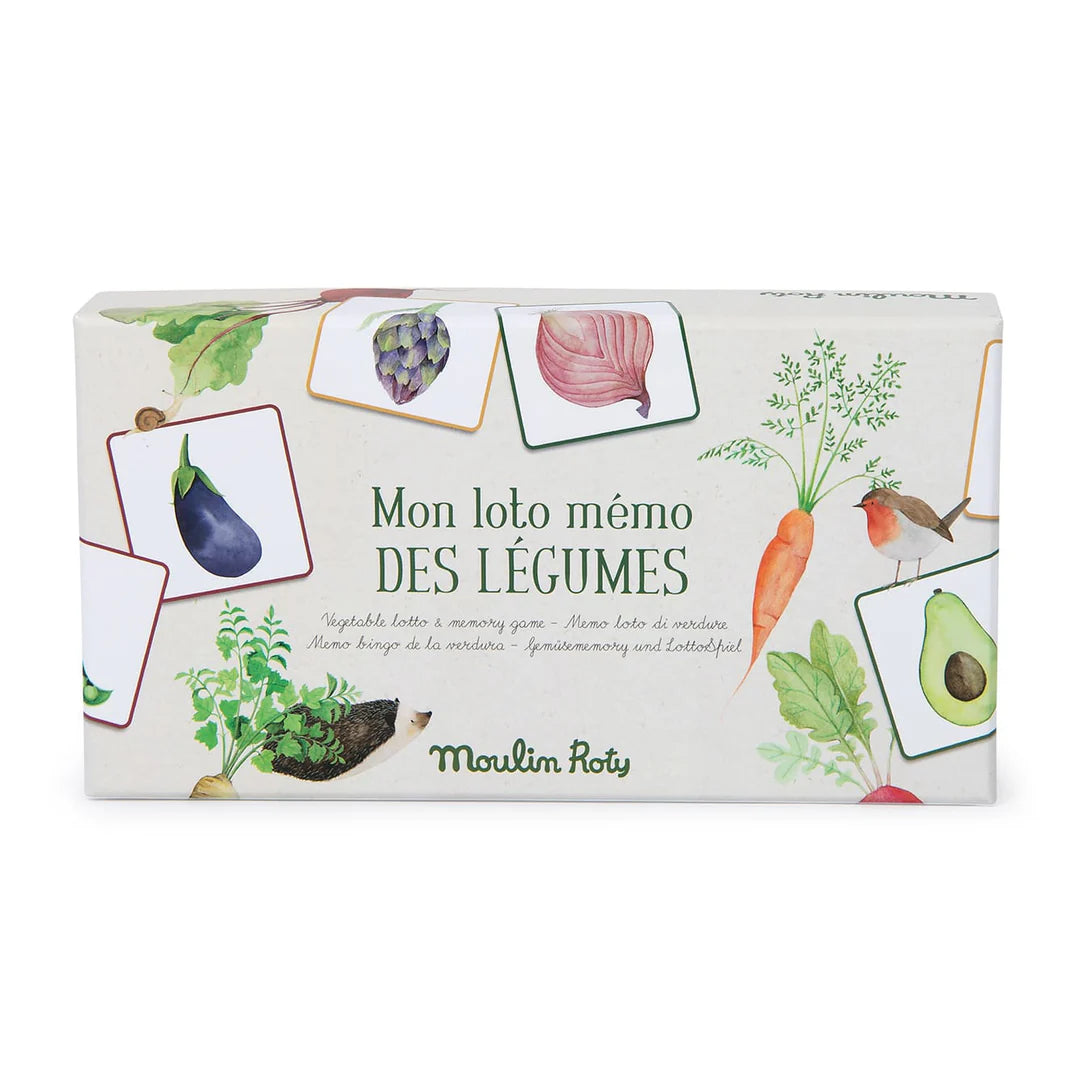 A 2-in-1 game with 6 sheets and 36 illustrated cards for playing memory games or bingo! Children can have fun recognising vegetables that grow above or below ground, whole or cut in half, using the fine watercolour illustrations.
