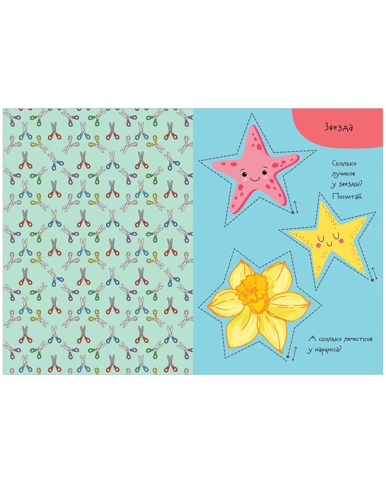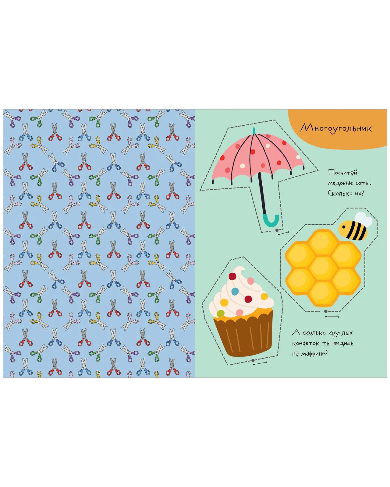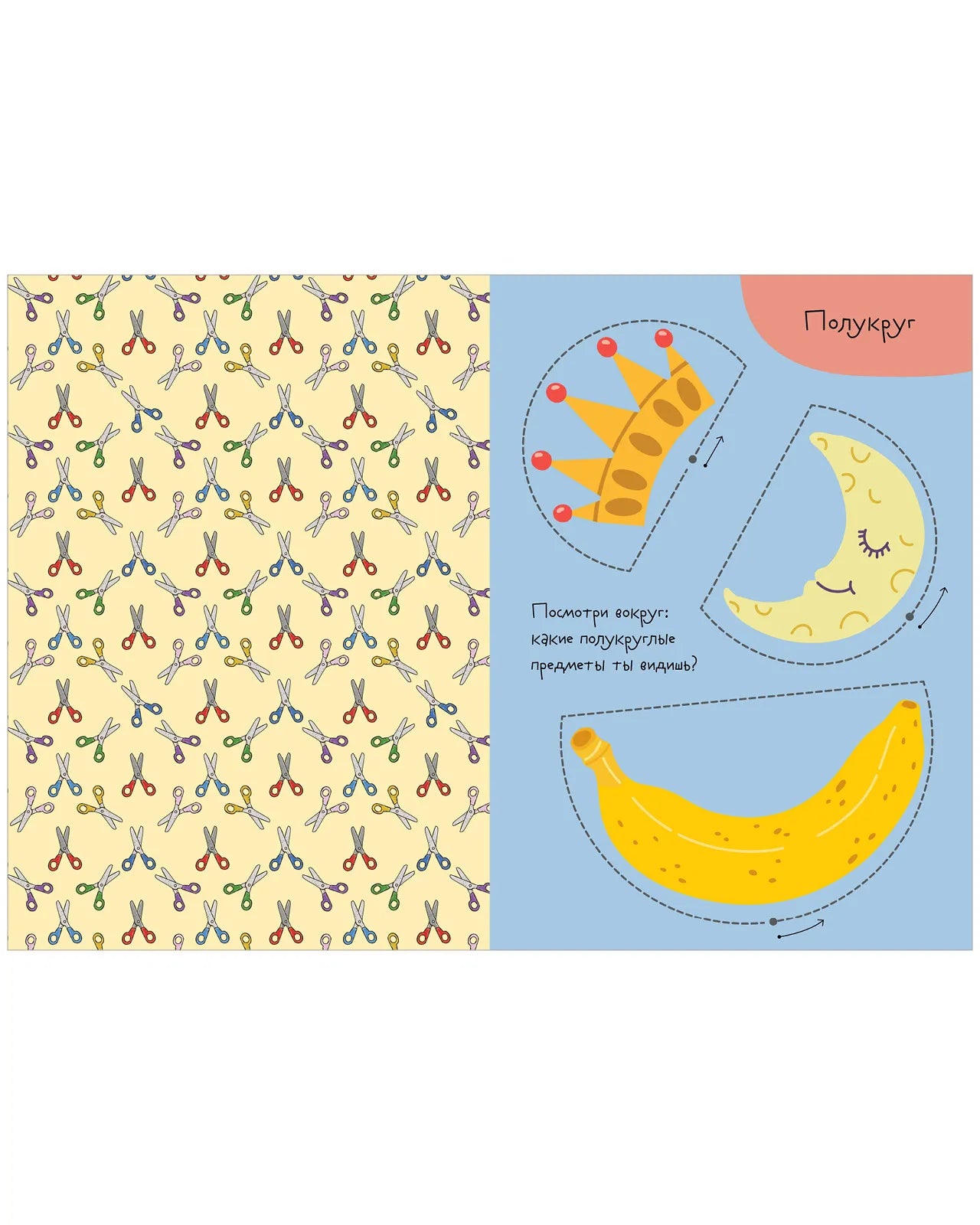 Развивающая книжка с яркими заданиями на вырезание. Малыш будет развивать мелкую моторику, координацию и ловкость пальчиков, изучая геометрические фигуры. Четкие пунктирные линии и стрелки показывают направление движения ножниц, помогая ребенку легко справиться с заданиями. Вырезанные картинки можно наклеить на бумагу и создать собственную композицию. Понадобятся только детские ножницы с закругленными кончиками.