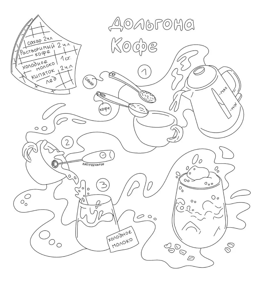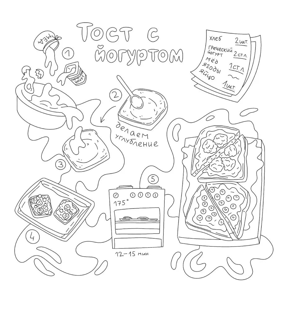 Внутри этой раскраски ты найдешь не только очаровательные иллюстрации в авторском стиле, но и подробные описания рецептов, что позволит превратить красивые картинки в аппетитные блюда. Проведите время с пользой, и пусть эта раскраска станет для вас первым шагом на пути к освоению кулинарного искусства!