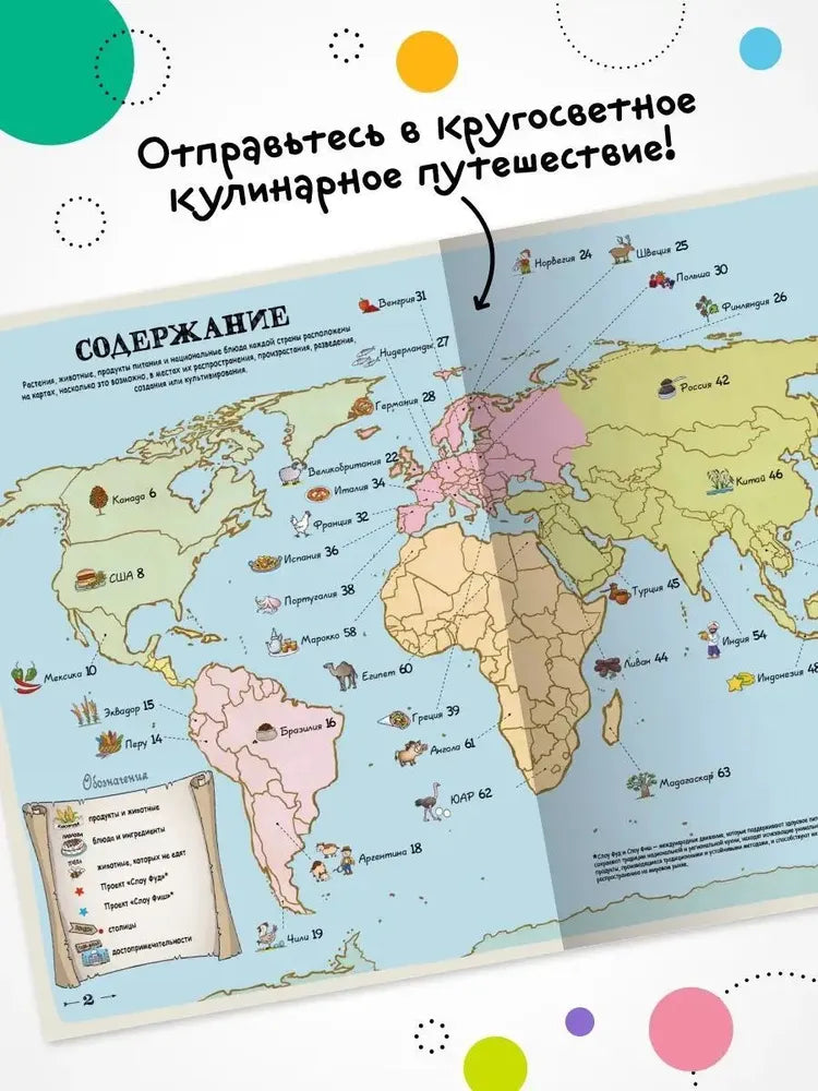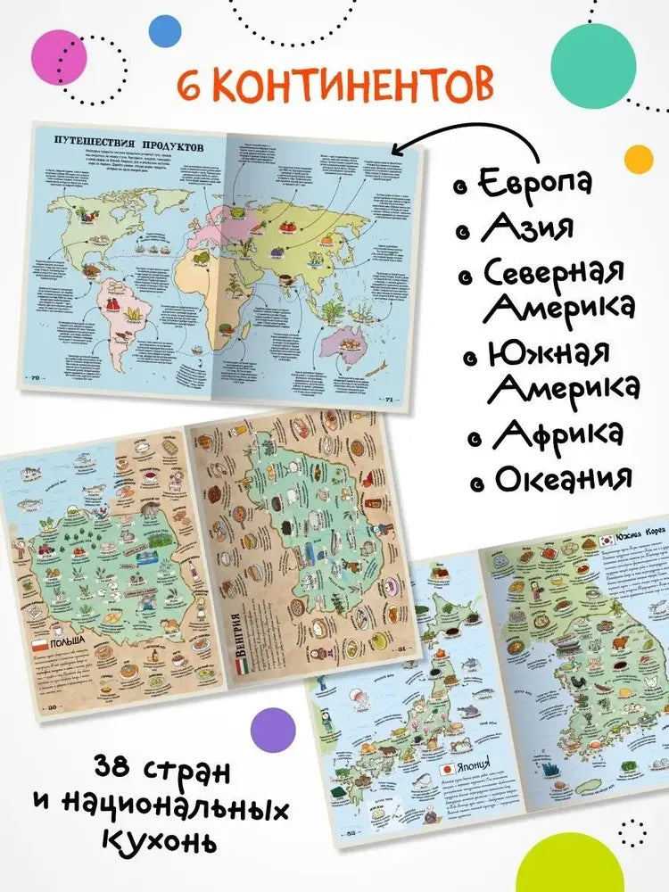 Вкусный атлас – большой иллюстрированный атлас про еду и кухни разных стран: можно «путешествовать» по миру и узнавать, что и где едят, какие продукты и блюда считаются местными.