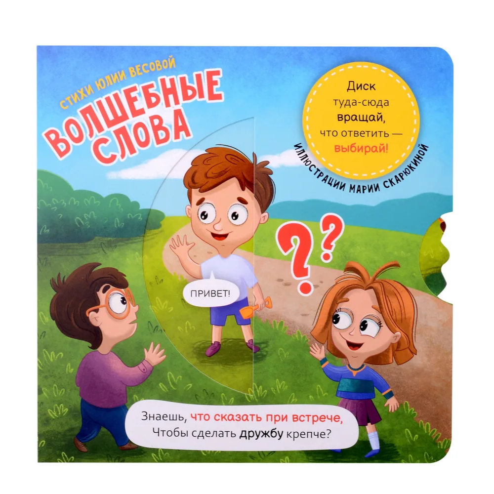 Интерактивная книга с вращающимся диском, которая превращает обучение вежливости в увлекательную игру! Ребенок крутит диск и исследует разные ситуации: что происходит, когда герои говорят «волшебные» слова вроде «пожалуйста» и «извини», и какие последствия наступают, если их не произносить. Наглядные примеры помогают малышу понять, как вежливые слова влияют на окружающих и почему быть воспитанным — это здорово! Идеальный способ развить социальные навыки через игру и открытия.