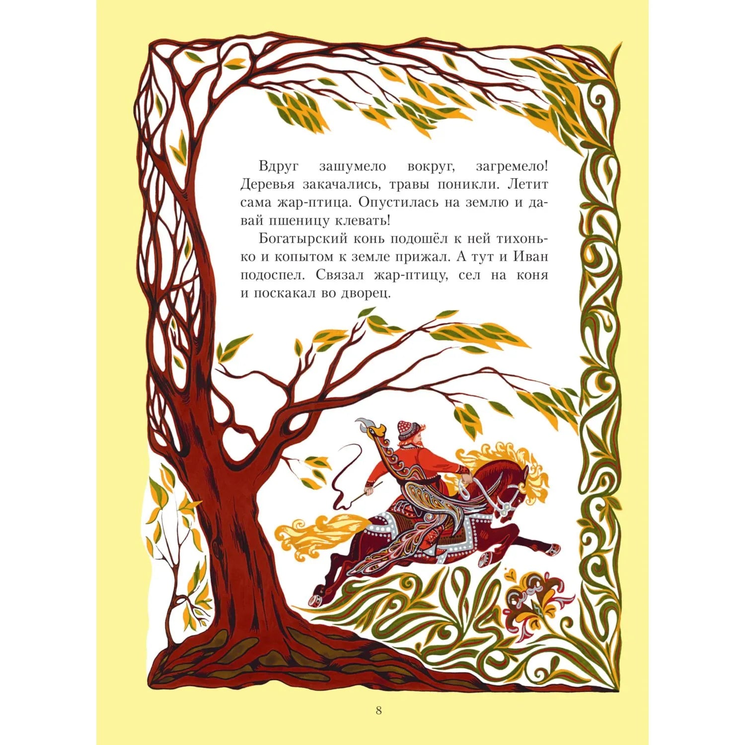 Диковинная Жар-птица — один из самых известных персонажей русских народных сказок. Её сверкающее оперение завораживает героев и заставляет их отправляться в дальние странствия, полные приключений и чудес. Всех, кто мечтает узнать, как выглядела необыкновенная птица, приглашают в чудесный мир волшебных сказок великолепные стильные иллюстрации известной художницы Елены Владыченко-Гокиели.